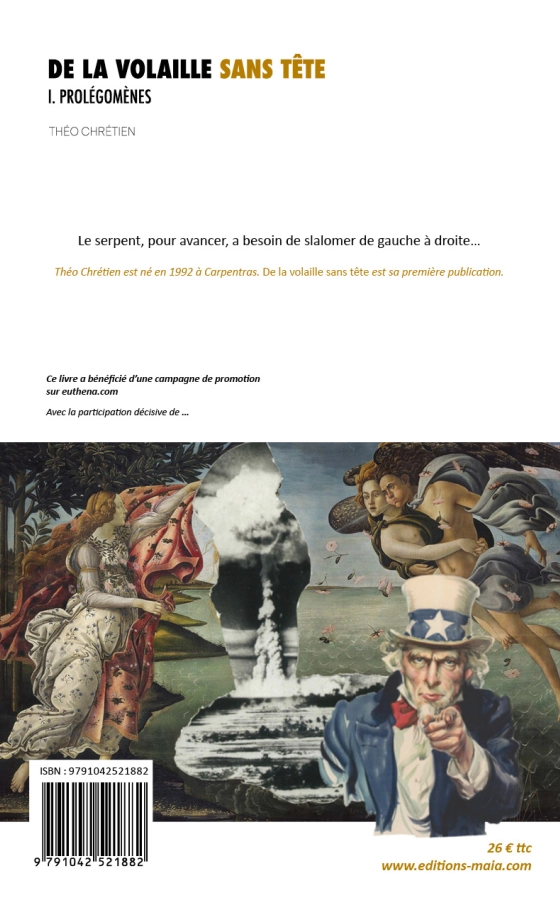 De la volaille sans tête remonte aux origines de notre modernité pour y déceler cette volonté d’émancipation d’un Homme désormais pris dans l’engrenage du progrès technique et du commerce des marchandises, en interrogeant les grandes idées qui l’auront conduit, de prouesses en tragédies, jusqu’à notre époque à la fois inquiétante et paradoxale.