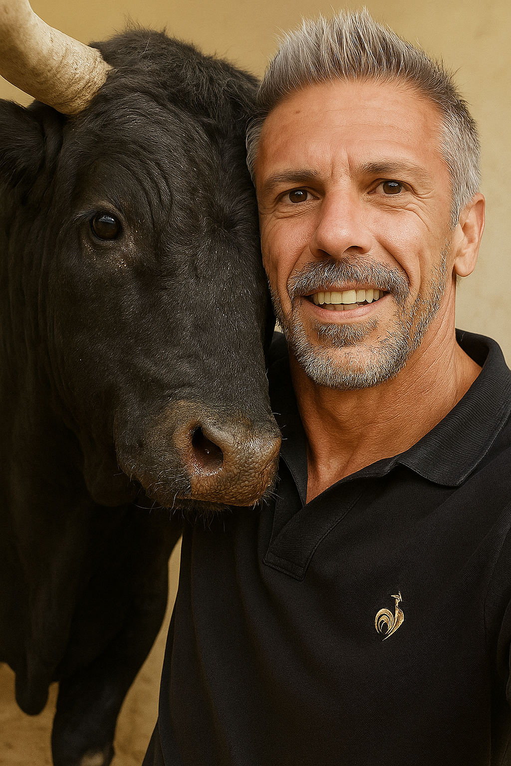 Attaché à mes racines pyrénéennes, au sport, et notamment au Rugby, véritable pilier culturel du Sud-Ouest, la diversité culturelle de cette région m'a conduit à découvrir un animal extraordinaire, aussi beau que courageux, qu'est le taureau.