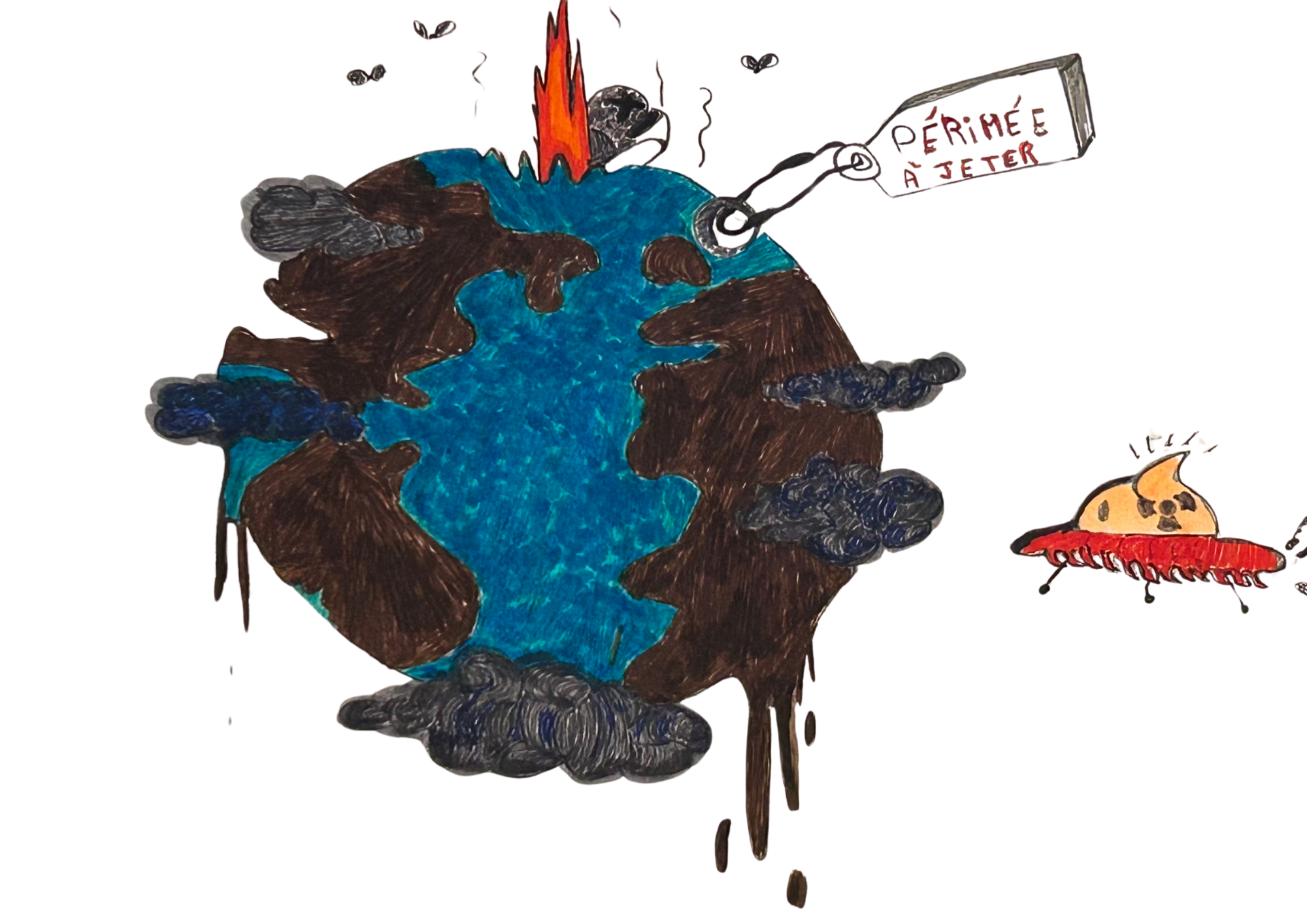 Que faire de la planète maudite, celle qui s’appelait la Terre ? Peuplée de créatures terrifiantes, personne, depuis la nuit des temps, n’osait s’approcher de cette planète belliqueuse, pourtant si idéalement coincée entre deux planètes insignifiantes, à bonne distance d’une jeune étoile. Un paradis bleu au départ, devenu le joujou des humains, pauvres êtres incapables de se rendre compte que des dizaines d’extraterrestre venaient en permanence les voir et scrutaient leur monde. Parce que la planète bleue était l’objet de craintes, d’histoires de croque mitaines que les enfants écoutaient attentivement le soir blottis dans leurs couvertures douillettes. Les humains devenaient alors des ogres venant chercher les petits bambins désobéissants.