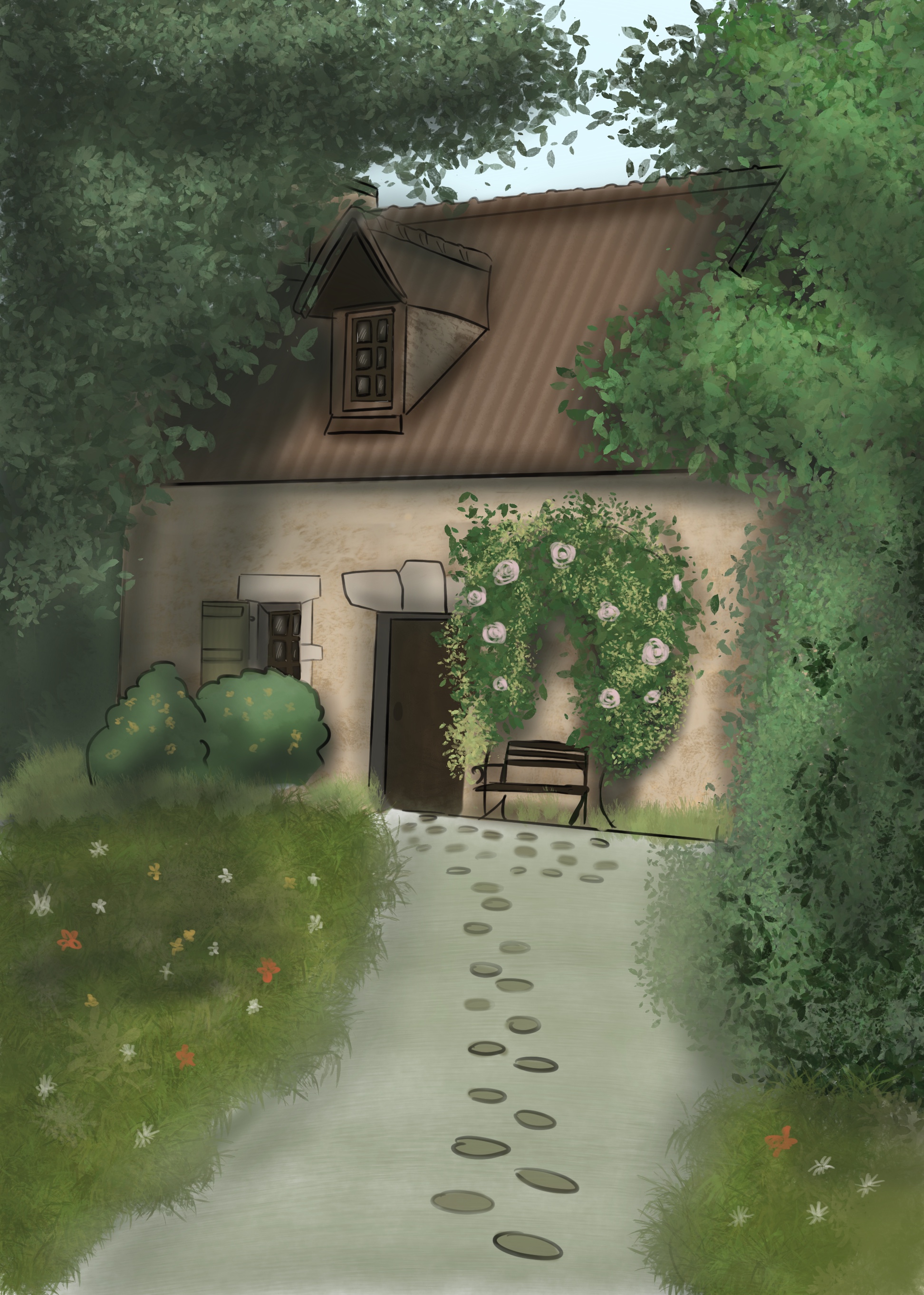 Matéi décide de me faire visiter la maison, le temps que Gwen rallume la machine qui permet de tout allumer, il appelle cela un “disjoncteur”. Leur maison est immense, il y a tellement de pièces. Et toutes ont une fonction bien particulière. Toutefois, elles me paraissent toutes vides, sans aucune vie à l'intérieur.” Une fois la visite faite, il me prend la main.