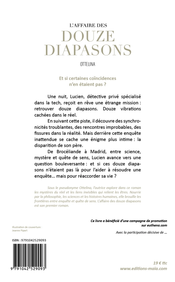 L’Affaire des 12 Diapasons est un roman contemporain à la croisée du thriller existentiel et du récit initiatique. Lucien, détective privé spécialisé dans les affaires numériques, reçoit en rêve une mission énigmatique : retrouver douze « diapasons ».