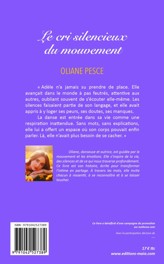 Je suis Oliane, danseuse et autrice, guidée par le mouvement et les émotions. Je m’inspire de la vie, des silences et de ce qui nous traverse profondément. Ce livre est mon histoire, écrite pour transformer l’intime en partage. À travers les mots, j’invite chacun à ressentir, à se reconnaître et à se laisser toucher.