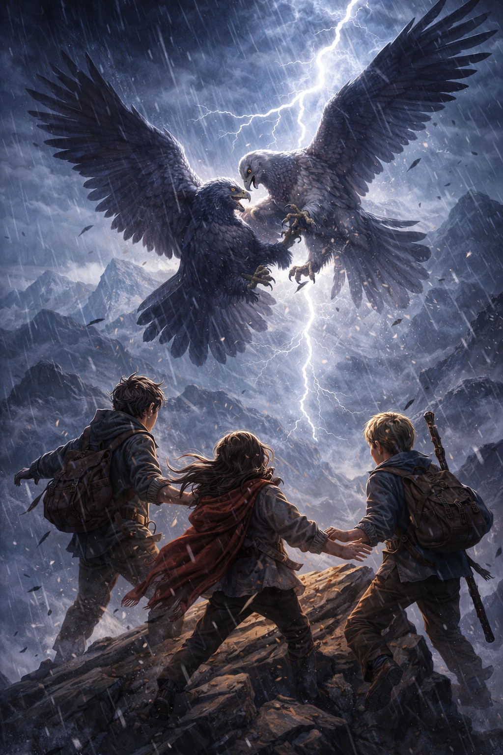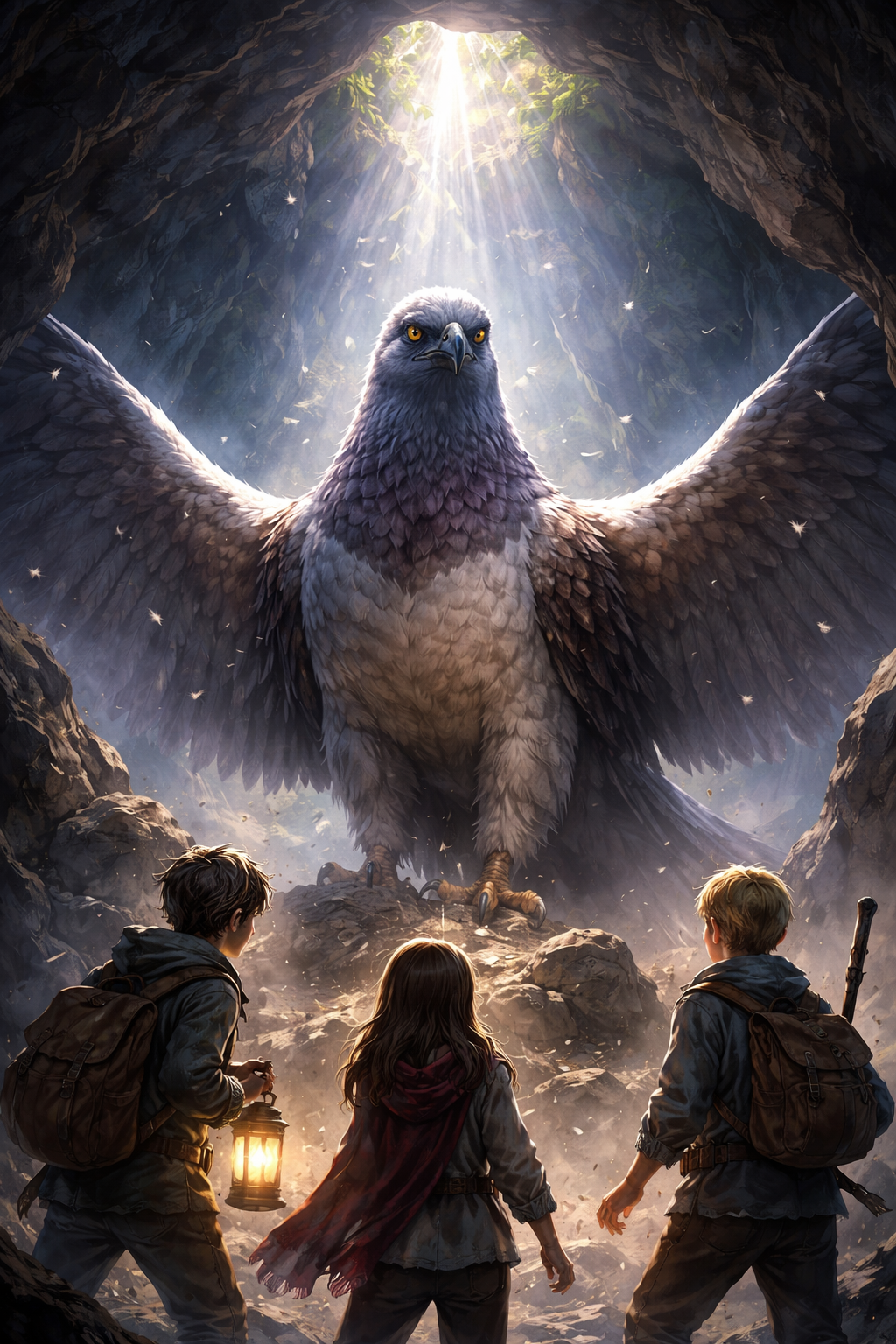 Au sein de cet équilibre singulier vivent les Pigeaigles, créatures aussi déroutantes que fascinantes, dont l’apparence mêle la familiarité du pigeon à la puissance majestueuse de l’aigle. Leur silhouette traverse le ciel avec une aisance souveraine, mais ce n’est pas seulement leur force qui impressionne : c’est leur regard, profond, chargé d’une intelligence ancienne, comme s’ils portaient en eux la mémoire du monde. Pour les habitants du Gardechistan, ils ne sont ni de simples animaux, ni de simples compagnons ; ils sont les gardiens d’un équilibre fragile, les témoins silencieux d’un lien qui dépasse les générations.