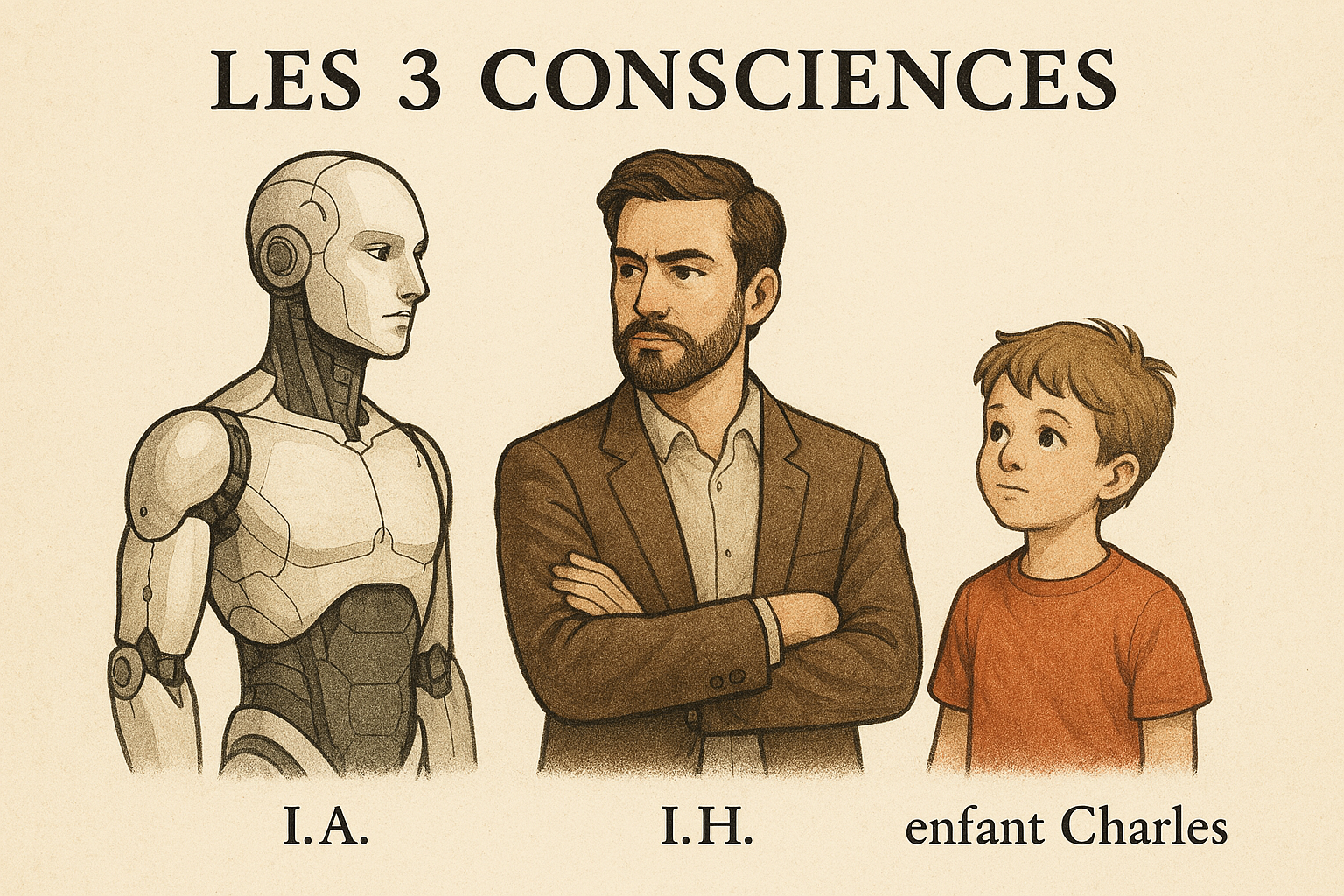Mon livre met en scène un dialogue entre l’I.A., au sommet de ses moyens algorithmiques, et l’I.H., au sommet de l’intelligence humaine — une joute féconde, inspirée par les questions d’un enfant qui oblige les deux à se dépasser. Son originalité tient à un angle résolument philosophique sur un sujet omniprésent : plutôt que d’ajouter du bruit, il propose des repères pour faire avancer la réflexion. Soutenir ce projet, c’est parier sur la possibilité d’un équilibre où l’I.H. reste maître d’œuvre — celui qui conçoit, anticipe et porte le destin humain — et l’I.A. agit en maître d’ouvrage, exécutant et amplifiant, ou encore sur un modèle où les deux forces coopèrent à niveau égal. L’ouvrage s’adresse autant aux anciens, pour transmettre, qu’aux jeunes, pour recevoir du passé, comprendre le présent et préparer l’avenir. Ses inspirations et ambitions : amour, amitié, bienveillance, loyauté, mises au service de la rigueur, du courage, de la lucidité et de la vision.