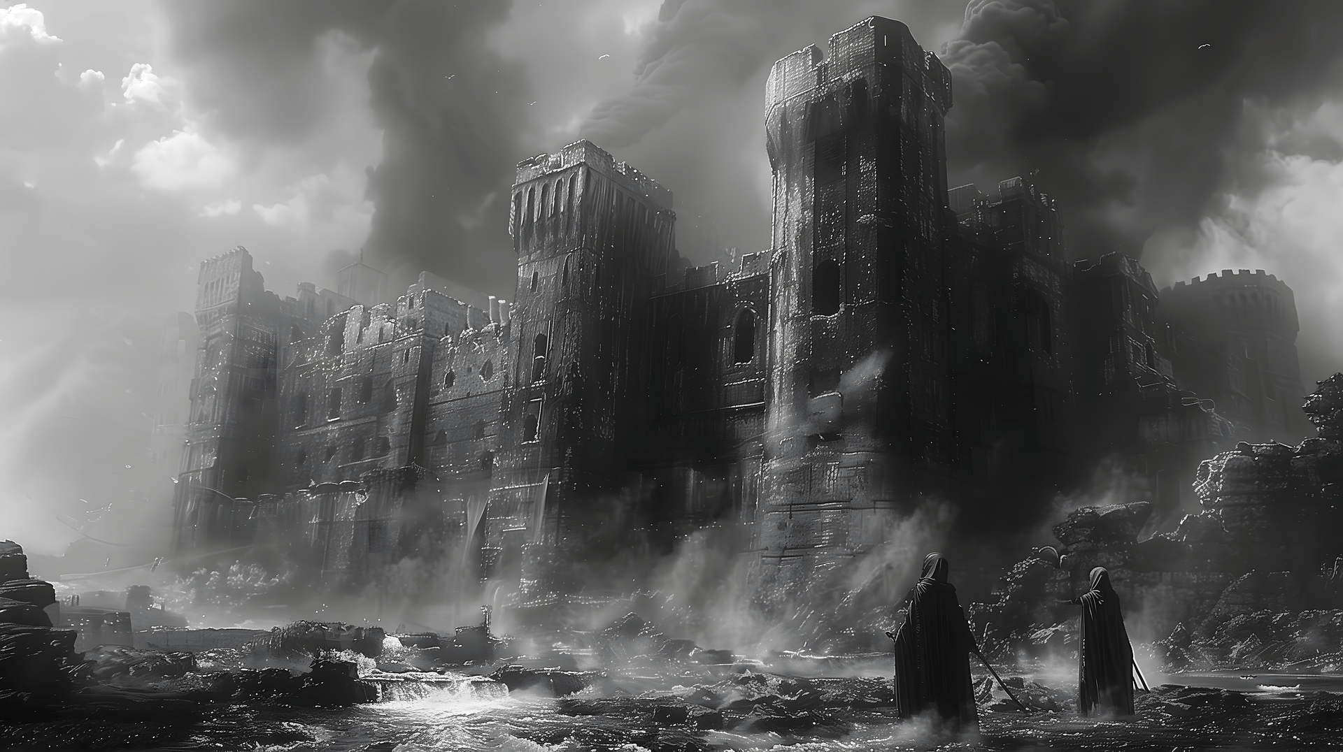 Mais cette fois, ni phœnix, ni roc ni même le serpent de mer n'étaient apparus de manière miraculeuse pour les sortir du pétrin. Ils avaient désormais du sable jusqu'au cou. Xorn vit soudain le regard de Kalwyna s'illuminer.