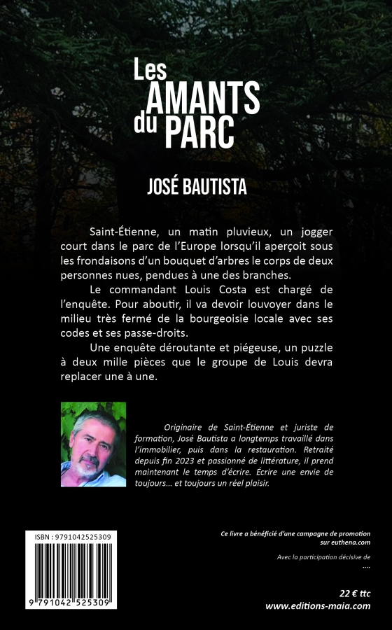 « Les Amants du parc » est mon premier roman. Après avoir écrit, comme c’est le cas de beaucoup d’auteurs, une nouvelle autobiographique, non publiée, sur une période de trois ans de ma vie, il y a longtemps, j’ai eu envie de m’essayer au roman policier. Originaire de Saint Etienne, j’ai voulu situer l’action dans cette ville que je connais bien.
