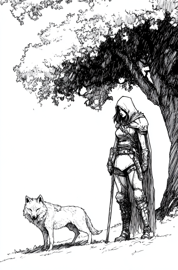 Lucile regarda Marion rejoindre les autres, frissonna à nouveau, puis la suivit. La suite se déroula en silence, rapidement. Les plus âgées enserrèrent leur poitrine dans une large bande de tissu qui la comprima afin de ne pas être gênées. Toutes avaient ôté leur robe et se revêtaient de leur tenue d’entraînement : chausses, souliers souples pour certaines, tenue ajustée. Puis elles se saisirent de leurs armes, bâtons, couteaux, haches. Suzon se chargea de l’épée de Jeanne, qui n’en avait pas eu l’utilité pour aller chasser. Les chasseuses étaient déjà en tenue masculine et Mathilde avait déjà la dague sur elle. Arthur, sentant la tension qui régnait autour de lui, s’était mis à bouger en tous sens, prêt à de l’exercice, mais on décida de le laisser. Il n’aurait pas servi à grand-chose dans les bois, sauf à les faire repérer par ses hennissements. Lorsque chacune fut prête, Marion saisit les foulards suspendus à une patère et dit quelques mots à Suzon qui, à regret, se tourna vers Milo.