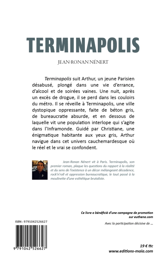 J’ai 40 ans, je suis né et vis à Paris. J’ai toujours tenté de reproduire mes obsessions esthétiques par différentes formes d’art : la musique dans un groupe de rock, la peinture avec de l’Aerosol Art sur bois et, enfin, la littérature via Terminapolis. C’est mon premier roman.