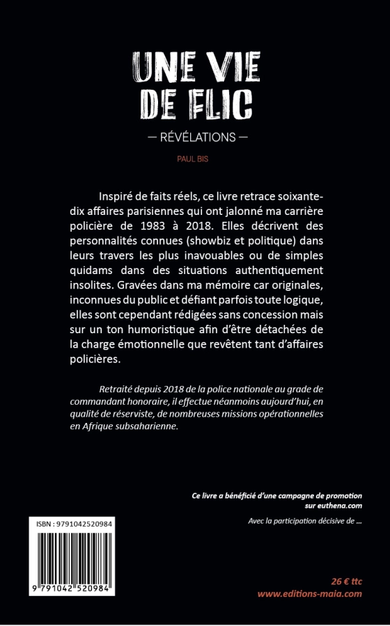 Après près de 40 ans à servir la Police nationale sur Paris, j'ai souhaité rédiger ce manuscrit pour que ma mère, arrivée à l'automne de sa vie, comprenne mieux quelles avaient été mes motivations à quitter notre paisible province pour exercer un métier si différent des autres. Je l'avais jusqu'alors épargnée de mes aventures car celles-ci auraient perturbé la sérénité de son quotidien. Dans cette optique, j'ai d'ailleurs opté pour ne relater que des affaires originales, référencées par mes procédures et inconnues du grand public.