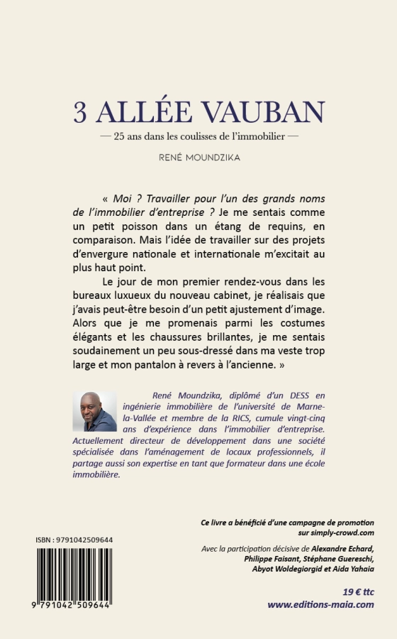 René Moundzika, diplômé d’un DESS en ingénierie immobilière de l’université de Marne-la-Vallée et membre de la RICS, cumule vingt-cinq ans d’expérience dans l’immobilier d’entreprise. Actuellement directeur de développement dans une société spécialisée dans l’aménagement de locaux professionnels, il partage aussi son expertise en tant que formateur dans une école immobilière.