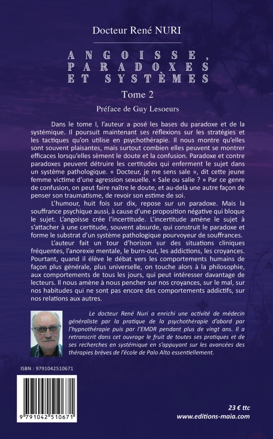 Le docteur René Nuri a enrichi une activité de médecin généraliste par la pratique de la psychothérapie d’abord par l’hypnothérapie puis par l’EMDR pendant plus de vingt ans. Il a retranscrit dans cet ouvrage le fruit de toutes ses pratiques et de ses recherches en systémique en s’appuyant sur les avancées des thérapies brèves de l’école de Palo Alto essentiellement.