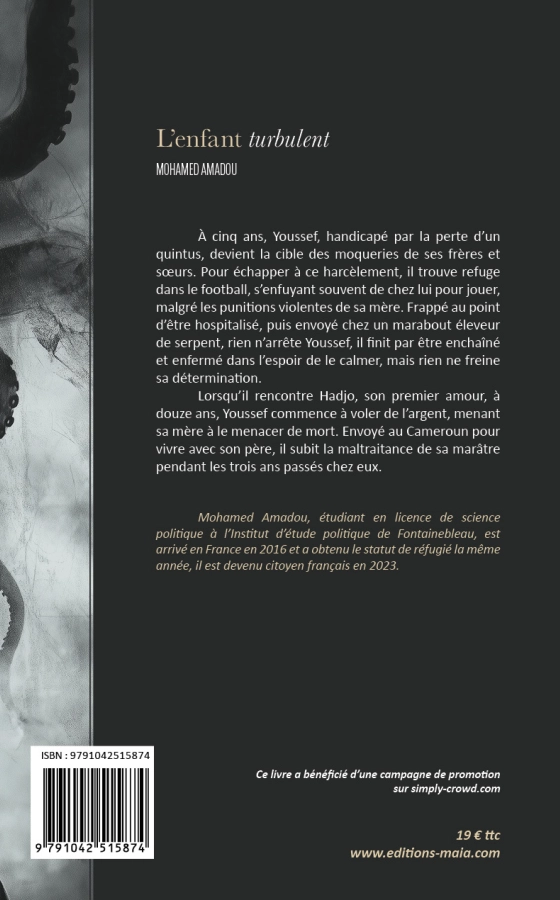 Lorsqu’il rencontre Hadjo, son premier amour, à douze ans, Youssef commence à voler de l’argent, menant sa mère à le menacer de mort. Envoyé au Cameroun pour vivre avec son père, il subit la maltraitance de sa marâtre pendant les trois ans passés chez eux.