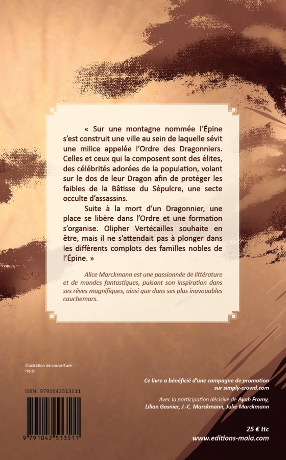 Suite à la mort d’un Dragonnier, une place se libère dans l’Ordre et une formation s’organise. Olipher Vertécailles souhaite en être, mais il ne s’attendait pas à plonger dans les différents complots des familles nobles de l’Épine. »