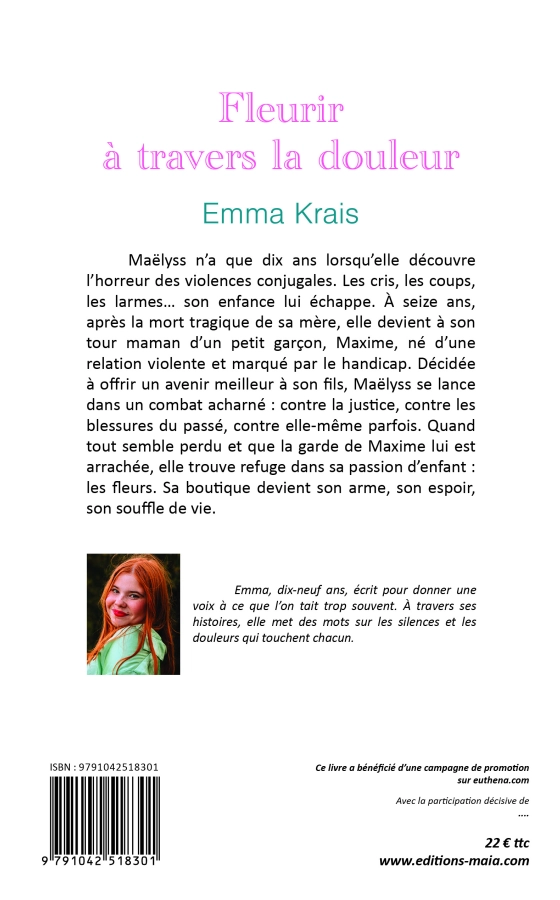 Maëlyss, confrontée très jeune à la violence, devient mère dans des conditions extrêmes. Son fils, Maxime, naît handicapé. Malgré une lutte judiciaire éprouvante et la perte de la garde, elle se relève. Elle ouvre une boutique de fleurs, réalise son rêve et finit par obtenir la garde exclusive de son enfant. Ce roman profondément humain touche par la sincérité de son récit et sa capacité à faire émerger l’espoir au cœur du chaos. Il s’adresse aux lecteurs sensibles aux causes sociales, à la parentalité, à la justice, et surtout, à la résilience. C’est une histoire vraie ou inspirée du réel, qui saura parler à tous ceux qui refusent de se laisser briser.