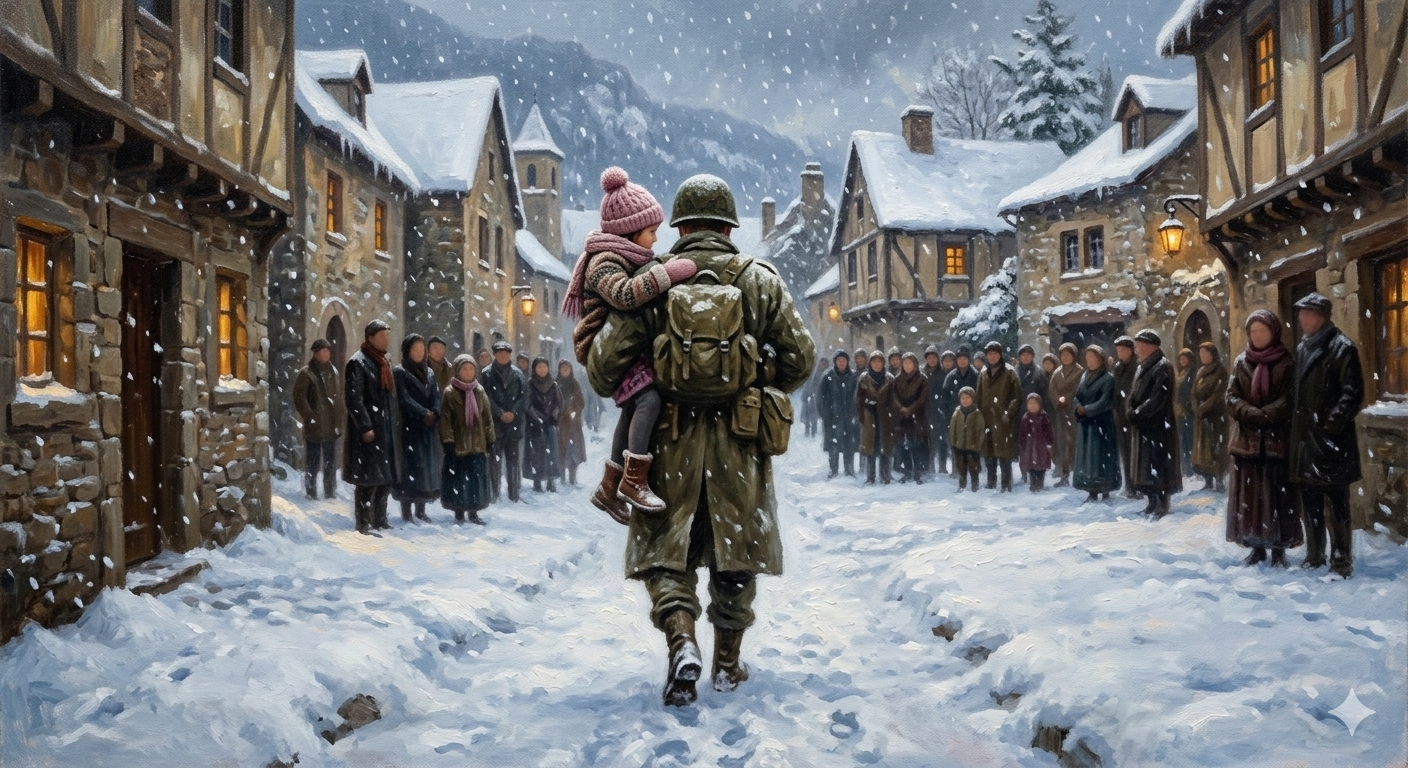 Quand il leva les yeux, il aperçut des flocons tomber. Il remarqua qu’il ne neigeait pas quand il entra dans la forêt. “Certainement le vent qui secoue les branches enneigées”, se dit-il.