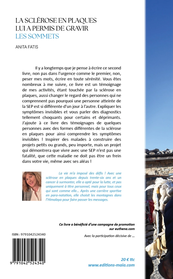 Je suis une personne qui me bat corp et âme pour bouger et faire bouger les choses… J’aide toutes les personnes sur les questionnements de la maladie les aides existante et autres renseignements… Merci de soutenir mon projet afin de donner l’espoir aux malades, afin que demain enfin nous trouvons le traitement de la remyélinisation de la myéline, J’ai écrit ce livre non pas pour me faire un enrichissement personnel mais reverser 70% des ventes à INSERM Strasbourg (recherche la neuroprotection)