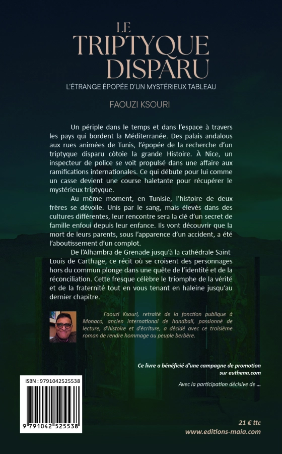 Ce tableau, d’origine sacrée, a traversé les siècles et les continents, depuis la Terre Sainte jusqu’à la Tunisie, en passant par l’Andalousie et l’Europe. Il est au cœur d’une quête qui mêle secrets familiaux, intrigues historiques et enjeux spirituels. Le roman se termine sur une note d’espoir et de réconciliation. Les personnages trouvent leur place dans le monde, et le triptyque, après des siècles d’errance, retrouve sa destination finale. L’œuvre célèbre la richesse culturelle du Maghreb et la résilience des peuples face aux épreuves de l’histoire.