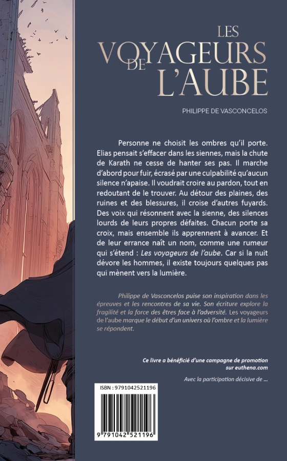 Le roman intitulé « Les Voyageurs de l'Aube » se penche sur la quête de rédemption d'Elias. La particularité notable est la représentation de ses conflits intérieurs par « l'ombre », qui le met face à ses fautes. Cette idée novatrice donne à l'évolution d'Elias une dimension psychologique profonde. Le récit combine une odyssée physique à une recherche introspective. Le titre représente un renouveau, malgré les marques laissées par le passé. Le livre traite de la culpabilité, de la résilience et du pardon. Il incite le lecteur à réfléchir sur le face-à-face de l'homme avec ses propres démons.