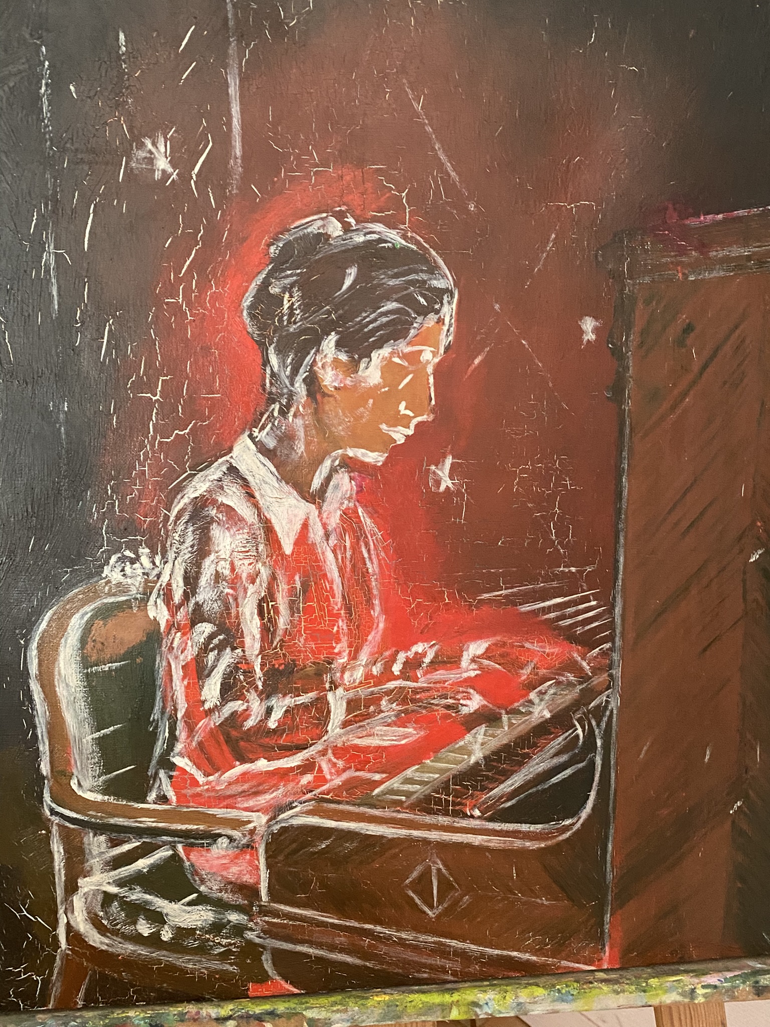 Artiste peintre, je passe du figuratif à l’abstrait, et compositrice musicale autodidacte.