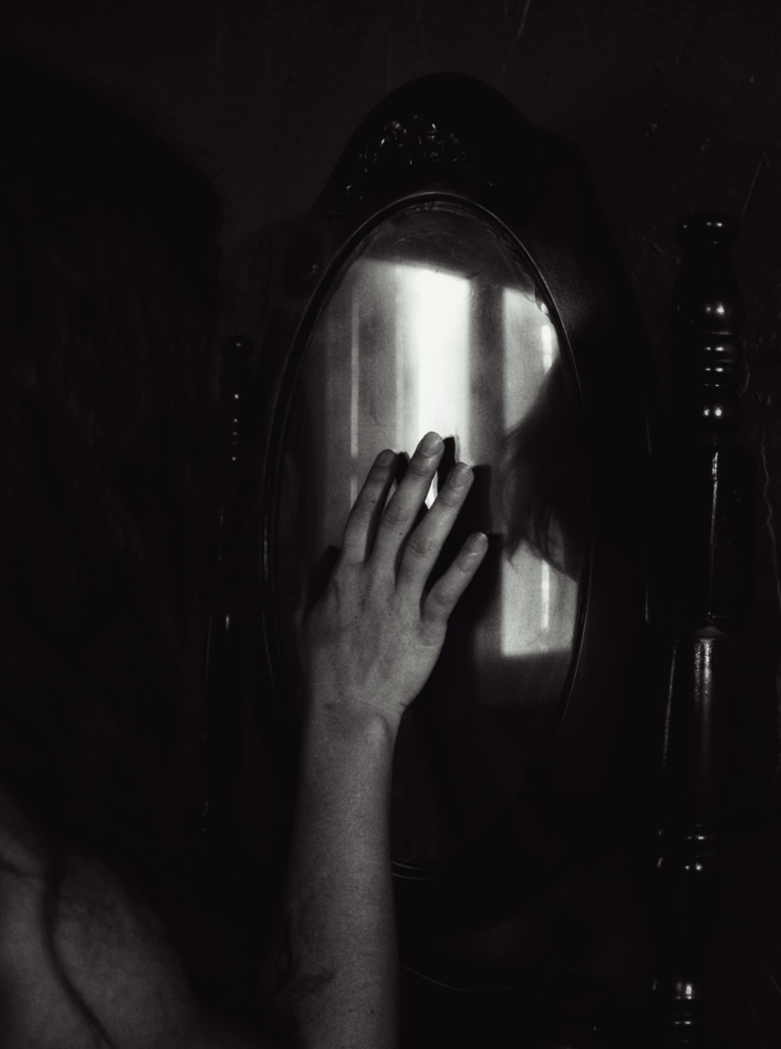Tout à coup, alors qu’elle se regardait dans le miroir, qu’elle se coiffait, elle vit un visage. Elle sursauta, se retourna pour vérifier que personne n’était dans la chambre. Personne. Elle ferme les yeux, respire à plein poumons et rouvre les yeux sur le miroir. Rien. Juste son reflet, pale et les traits tirés. Son esprit lui joue des tours.