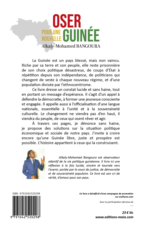 Ce livre est un regard lucide et sans détour sur la réalité politique de la Guinée. J’y décris une armée qui a perdu sa mission première, des politiciens opportunistes qui changent de camp à chaque nouveau pouvoir, et une population divisée par l’ethnocentrisme.