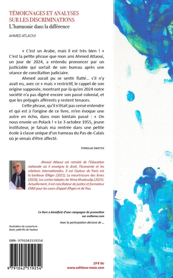 Ahmed ATLAOUI est retraité de l’Éducation nationale où il enseigna le droit, l’économie, et les relations internationales. Il est l’auteur de Paris est la banlieue d’Alger (2021), La meurtrissure des âmes (2024), Les contes kabyles de Yéma Khadoudja (2025). Actuellement, il est conciliateur de justice bénévole et formateur à l’École Nationale de la Magistrature – DFPS – pour les cours d’appel d’Agen et de Pau.